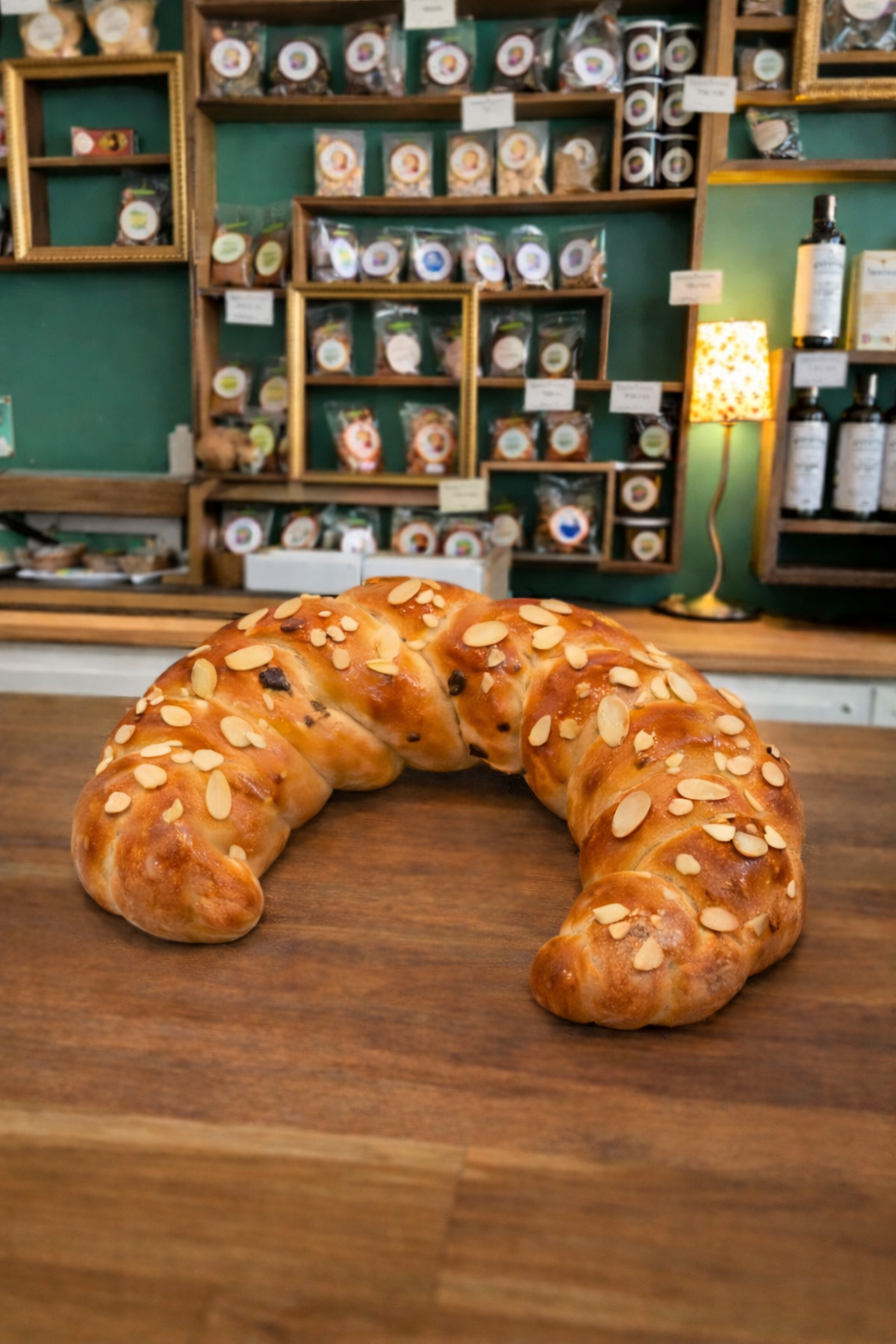 500g Osterkipferl aus feinem Germteig mit Mandeln bestreut